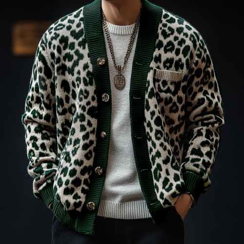 Product Code: mens-vintage-leopard-jacquard-colorblock-single-breasted-cardiga